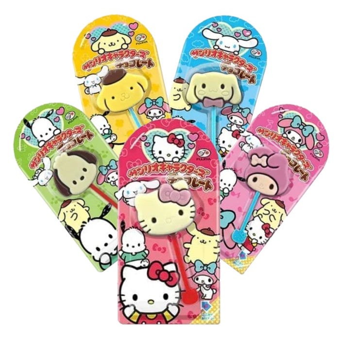 Sanrio Characters Chocoladelolly met melk- en witte chocolade. Verpakt in een vrolijke verpakking - het is een verrassing welk design je krijgt.
