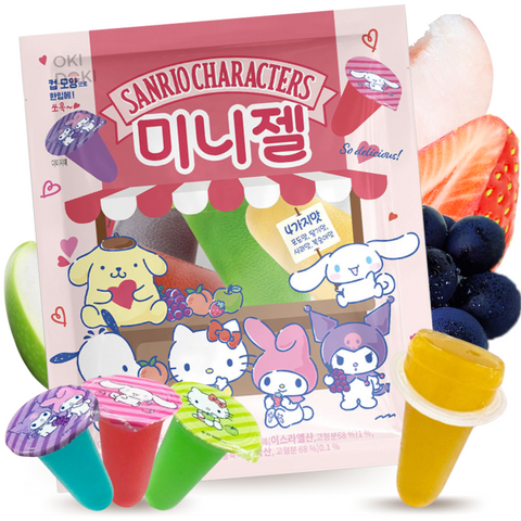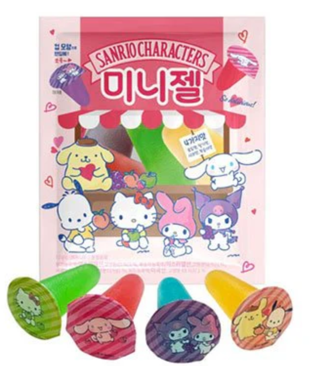Jellies van Sanrio Characters in 4 verschillende smaken: appel, aardbei, druif en perzik! Je kunt ze ook in de vriezer stoppen om het te bevriezen. Ook leuk om als traktatie uit te delen!