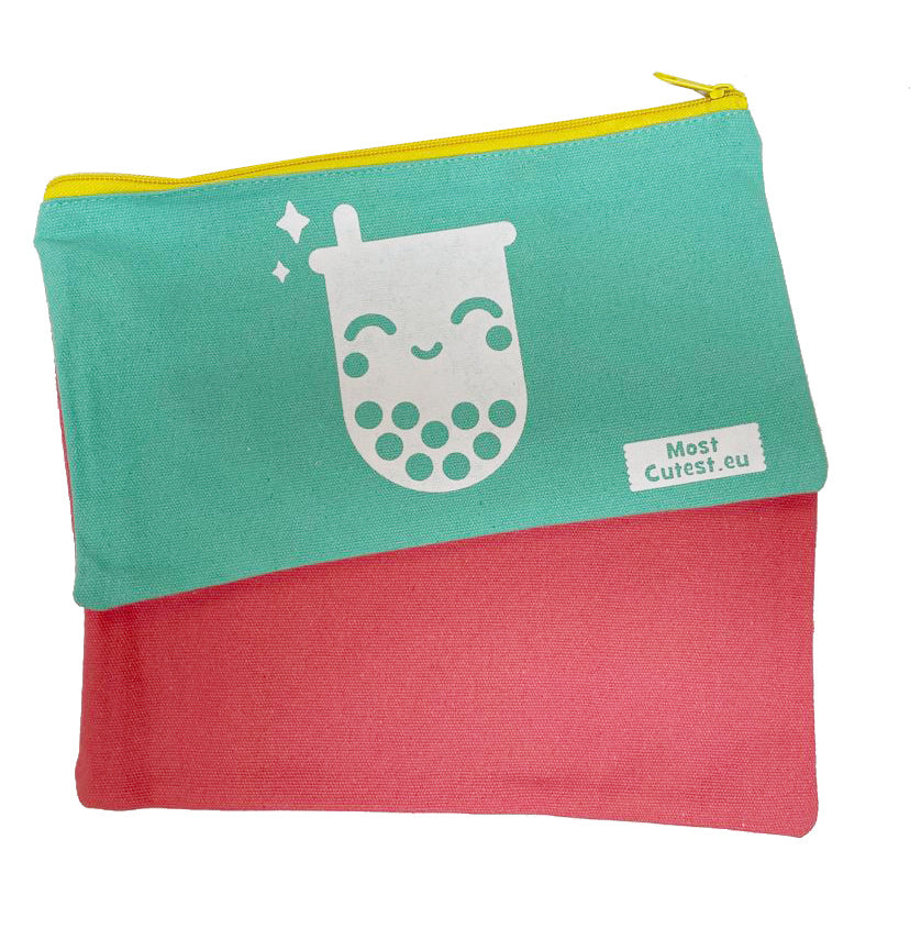 Kawaii Canvas Etui / Toilettasje - Mint Coral