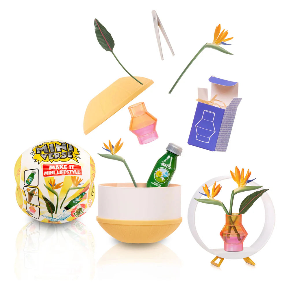 Elke bal wordt geleverd met realistische mini-items en accessoires waarmee je je eigen mini-replica's kunt maken van je favoriete lifestyle- en woonaccessoires! Van planten tot vogelhuisjes en bloemen, elk pakket is een VERRASSING, dus je weet pas welke mini je hebt als je hem uitpakt! Vergelijk de inhoud van je pakket met de meegeleverde verzamelgids, om te zien welke mini je hebt. Volg de instructiekaart op de achterkant om je mini klaar te maken.
