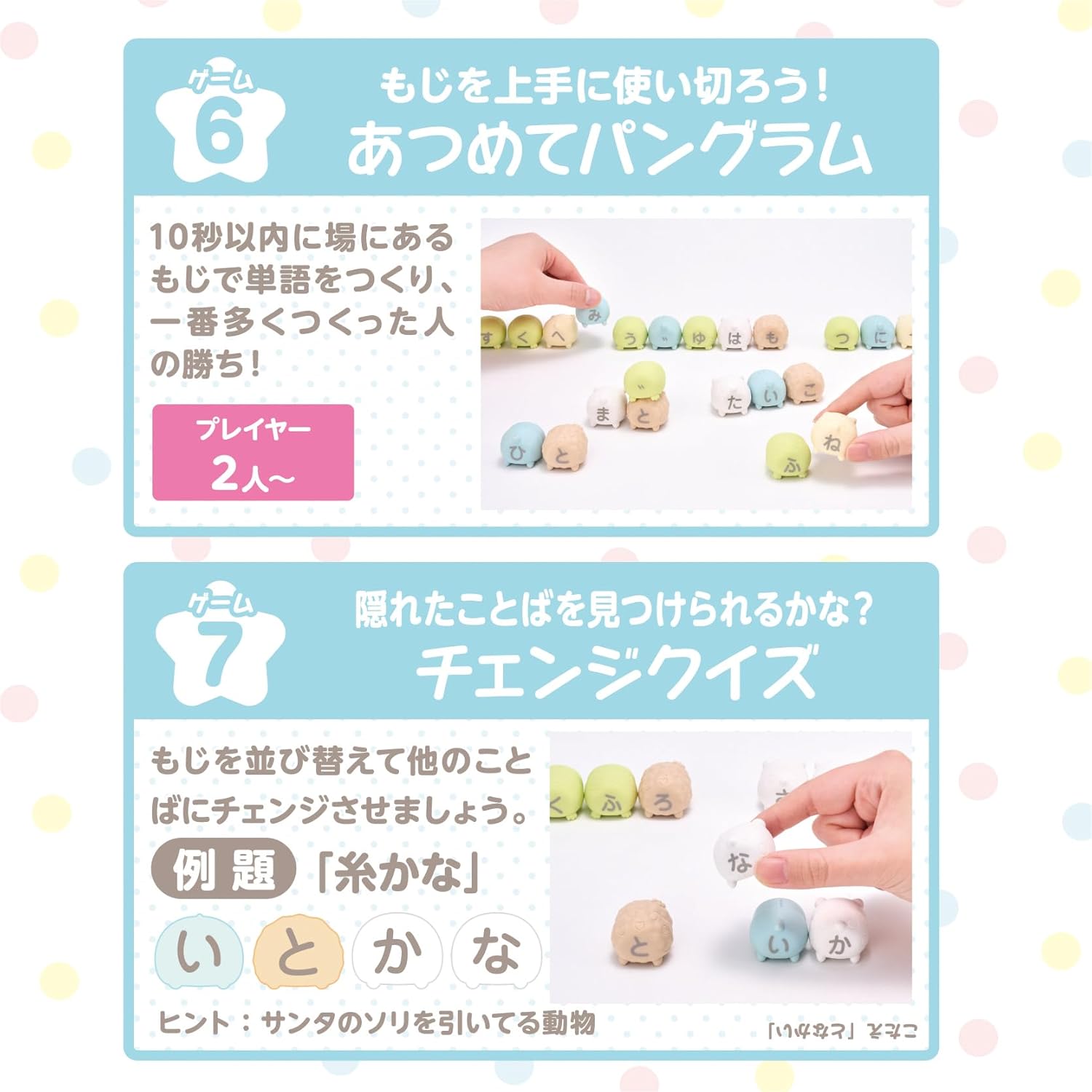 Leren lezen in het Japans wordt een stuk leuker met deze schattige Sumikko Gurashi oefenset. In dit speelse spel combineer je letters en woorden terwijl je samen met de bekende Sumikko-personages verschillende mini-games speelt. Perfect voor iedereen die op een vrolijke manier kennis wil maken met de Japanse hiragana tekens.