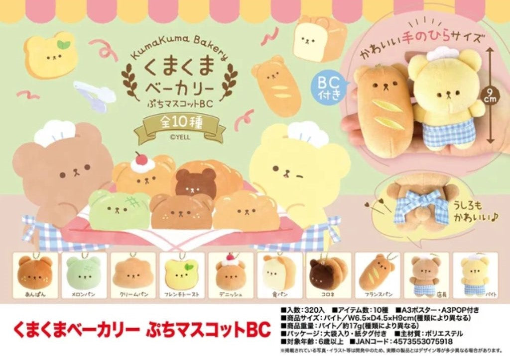 Schattige knuffels van KumaKuma Bakery die je ook kunt gebruiken als sleutelhanger! Er zijn 10 verschillende soorten en ze zijn gemaakt van zacht materiaal.