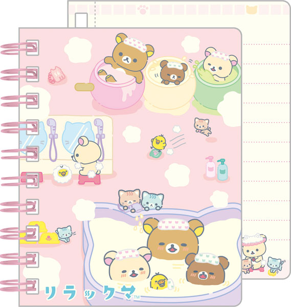 Memoboekje Klein met Ringband - Rilakkuma Cat Public Bathhouse - Pink