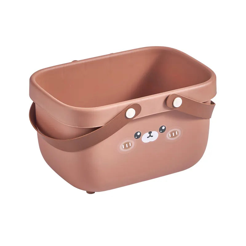 Handig en stevig mandje gemaakt van hard plastic met buigzame. bruine handvaten. Super leuk voor op je slaapkamer, in je badkamer of in je voorraadkast.