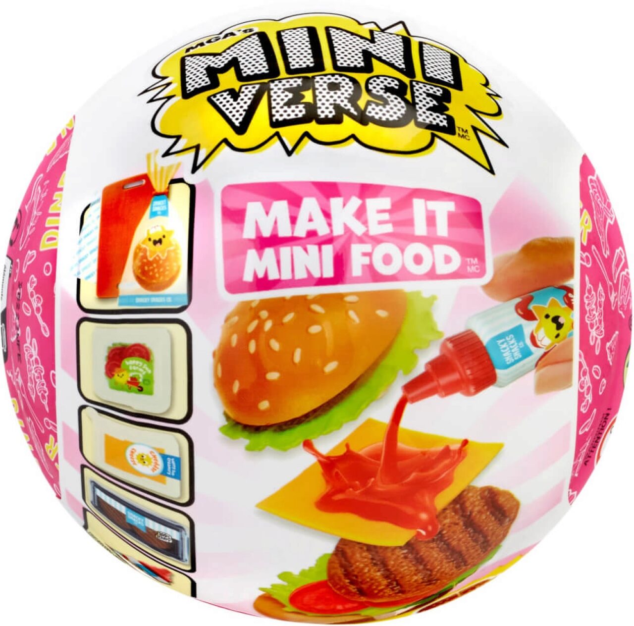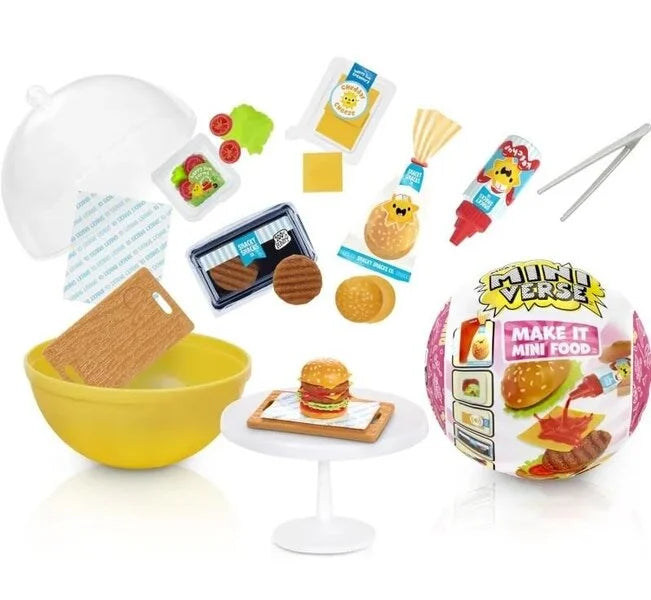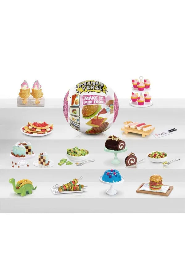 Maak kennis met MGA's Miniverse, Make It Mini Food! Het ORIGINELE mini-verzamelobject dat je kunt maken, neerzetten en verzamelen. Elke bal wordt geleverd met realistische mini-"ingrediënten" en accessoires waarmee u uw eigen mini-replica's van uw favoriete snacks en desserts kunt maken!